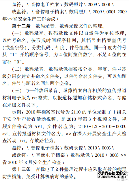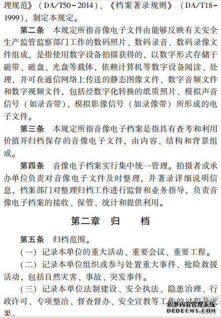 安全生產監管監察部門音像 電子文件歸檔管理規