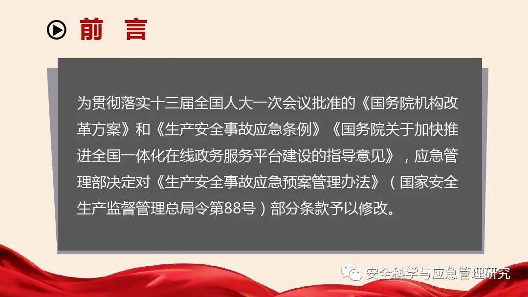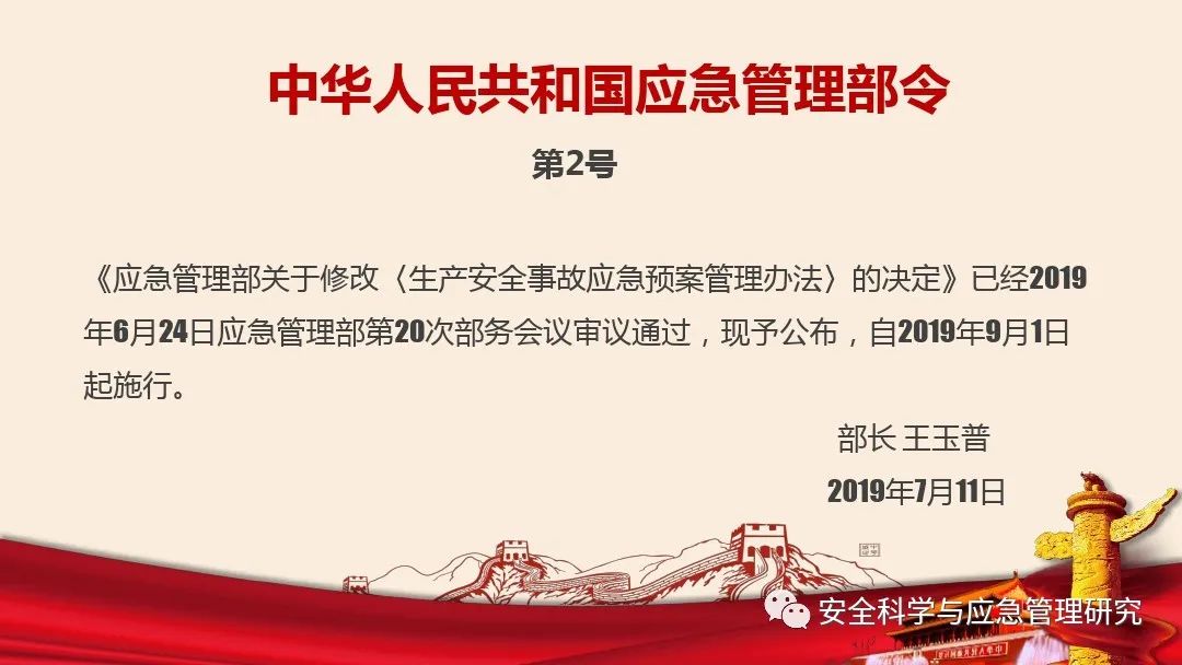 中華人民共和國應急管理部令第2號發布,內容是關于修改原安全監管總局88號令《生產安全事故應急預案管理辦法》,一共涉及19條修改,同時將修改后的文本正式發布!