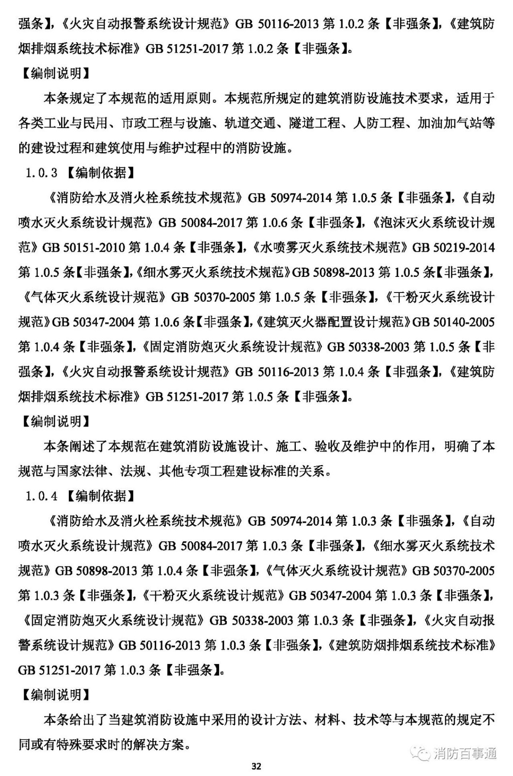 1.0.5 執行本規范必須同時加強工程質量安全管理,嚴格規范的實施監督。建筑在規劃、設計、施工和使用中的消防設施,除應遵守本規范外,尚應符合國家現行有關規范的規定。