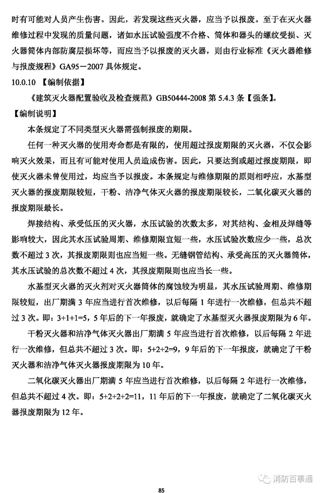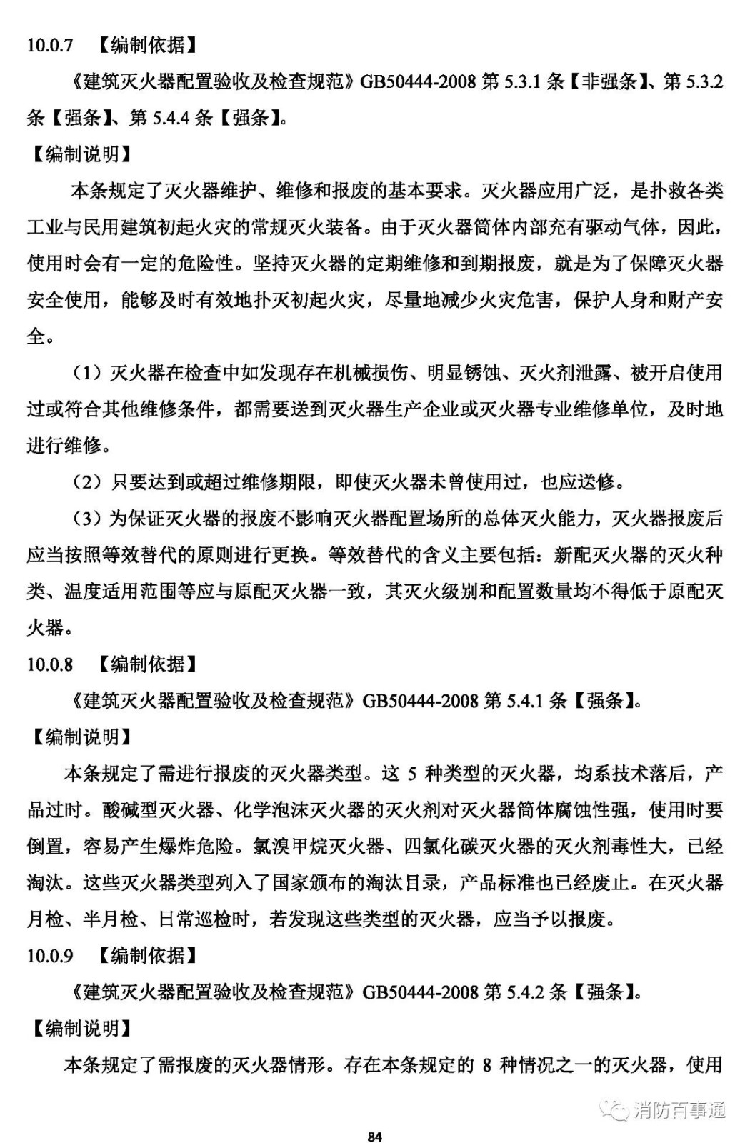 10.0.8 滅火器應按規定定期維護、維修和報廢。滅火器報廢后,應按照等效替代的原則進行更換。