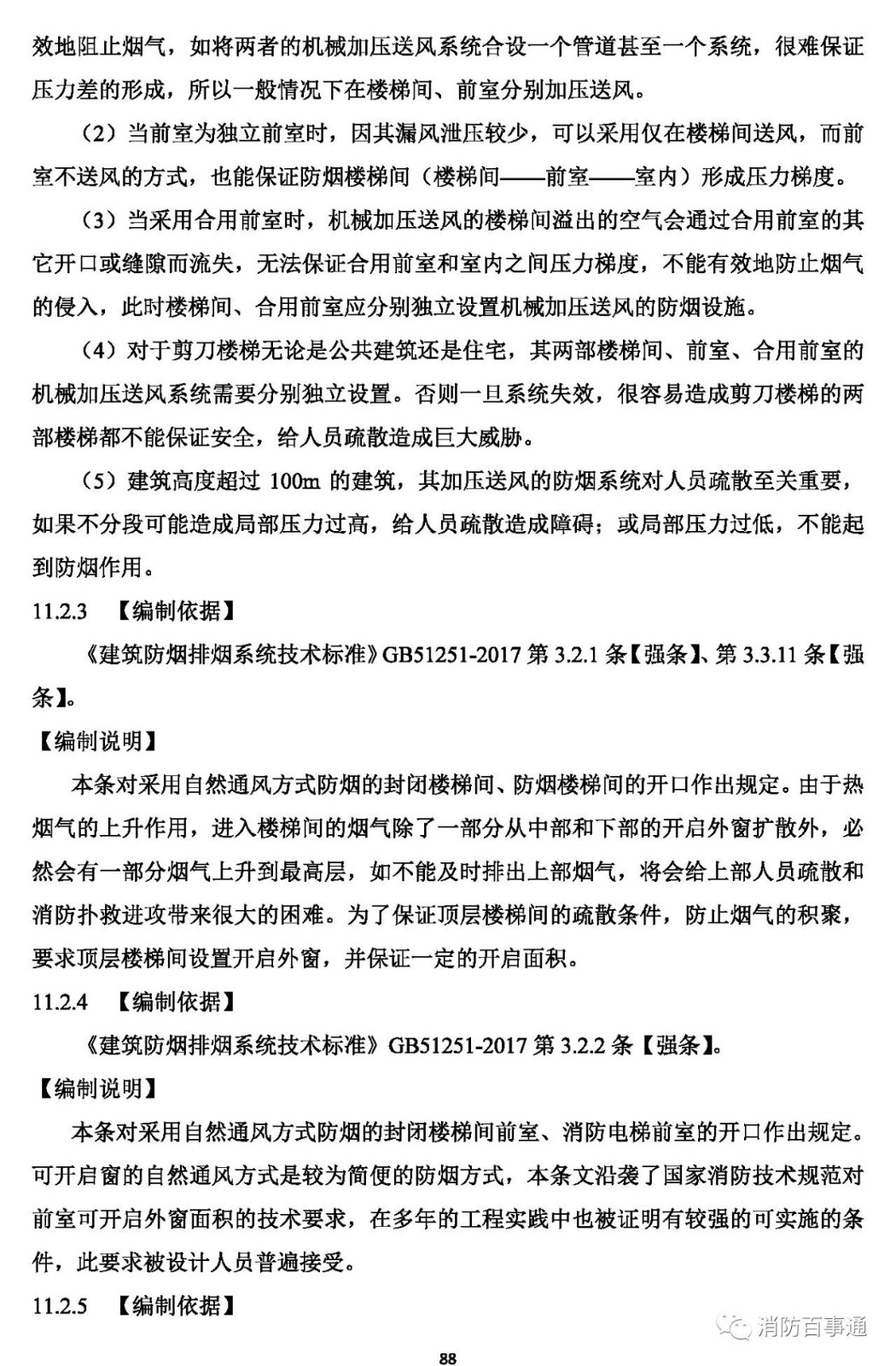 11.2.4 采用自然通風方式防煙的防煙樓梯間前室、消防電梯前室應具有面積不小于2.0㎡ 的可開啟外窗或開口,合用前室應具有面積不小于3.0㎡ 的可開啟外窗或開口。