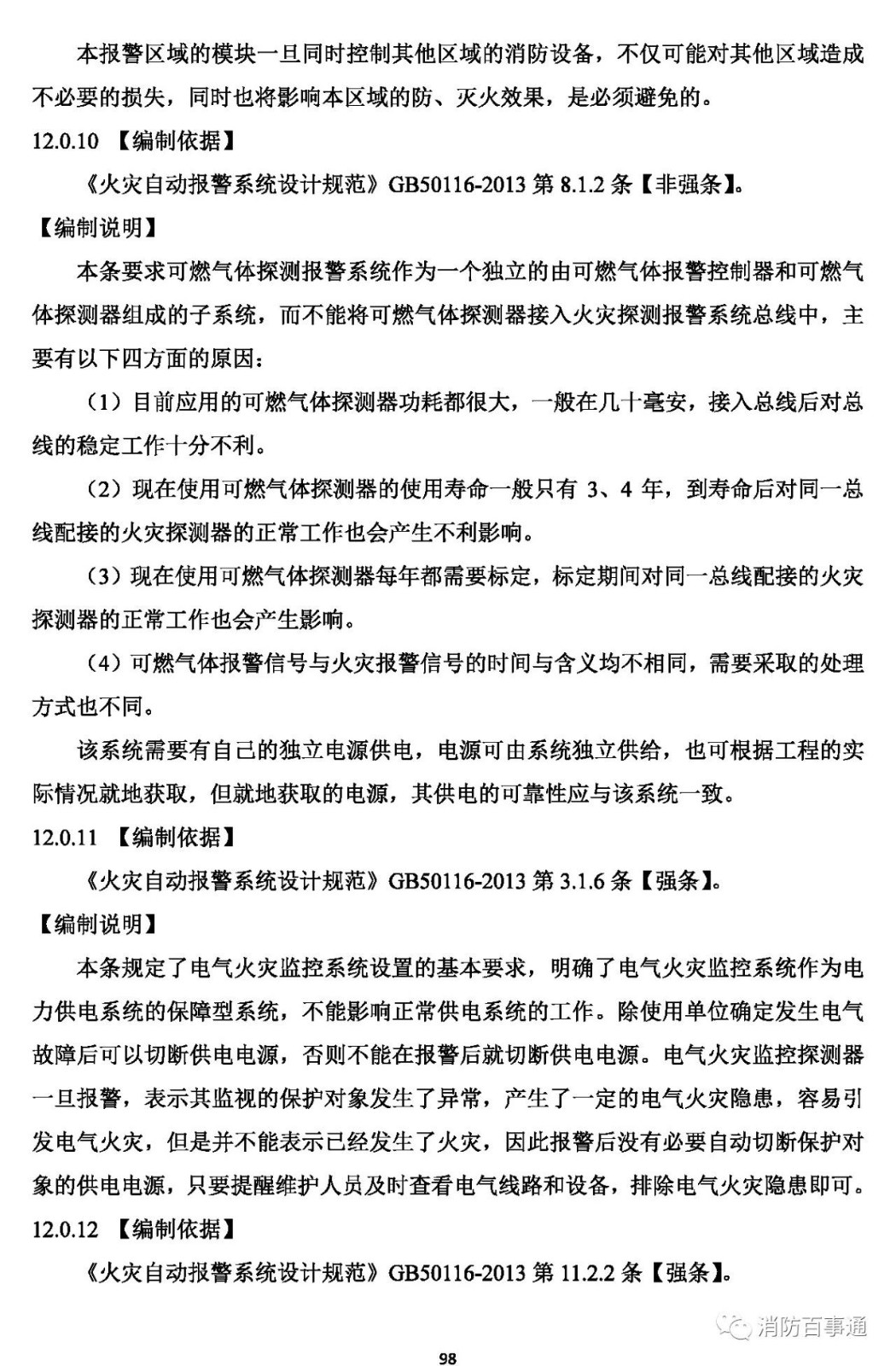 12.0.10 可燃氣體探測報警系統應獨立組成。可燃氣體探測報警器和非獨立式電氣火災監控探測器不應直接接入火災報警控制器的探測器回路。