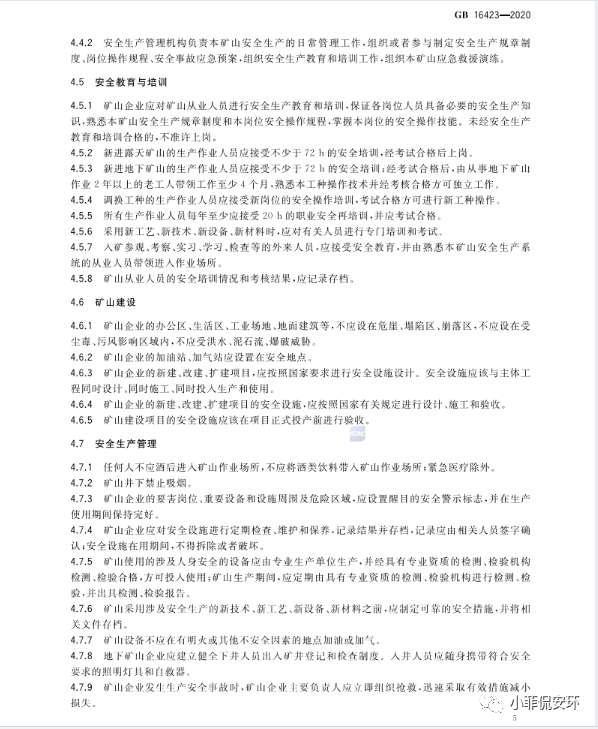 GB16423-2020《金屬非金屬礦山安全規(guī)程》,2021年9月1日起實施!