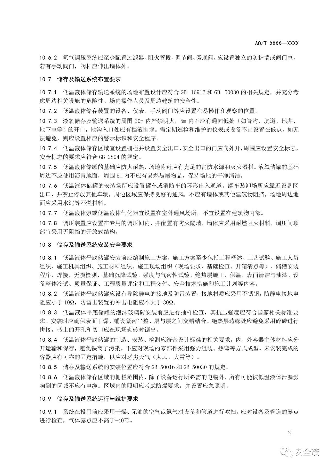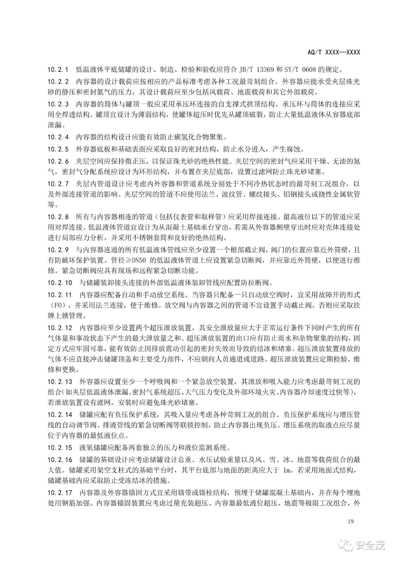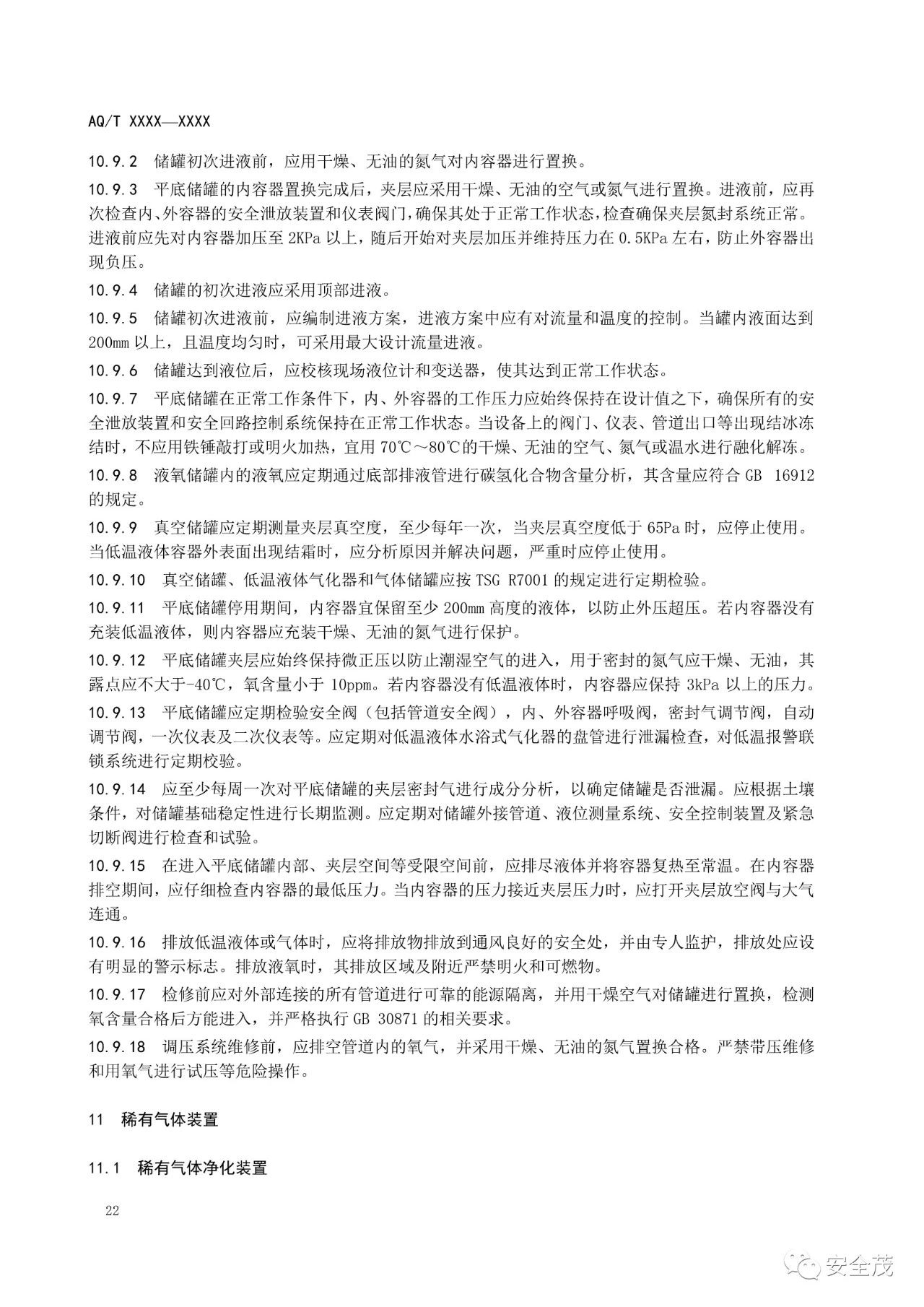 11、在清洗油罐中增加了清罐作業特殊工種施工人員證件、安全教育培訓等要求,增加了專職監護人員和安全員的要求,增加了設置警示牌的要求。增加了清罐通風要求,增加了氧氣含量和油氣濃度含量檢測要求,增加了氧含量和油氣濃度定時復測要求,提高作業環境的安全檢測。增加了惡劣天氣下的作業要求。