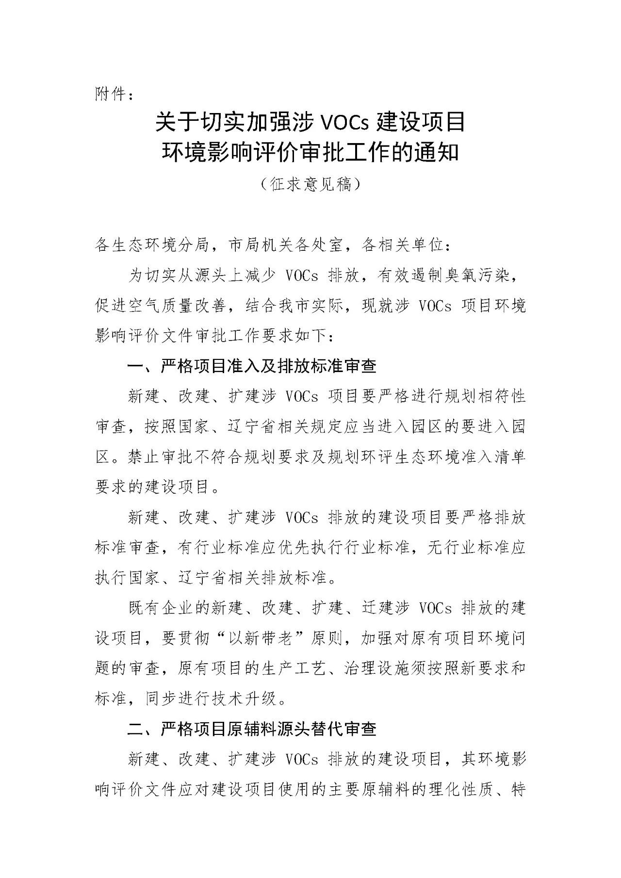 昨日,沈陽市生態環境局發布“關于公開征求《關于切實加強涉VOCs建設項目環境影響評價審批工作的通知》意見的通知”,全文為涉VOCs項目環境影響評價文件審批工作要求細則。