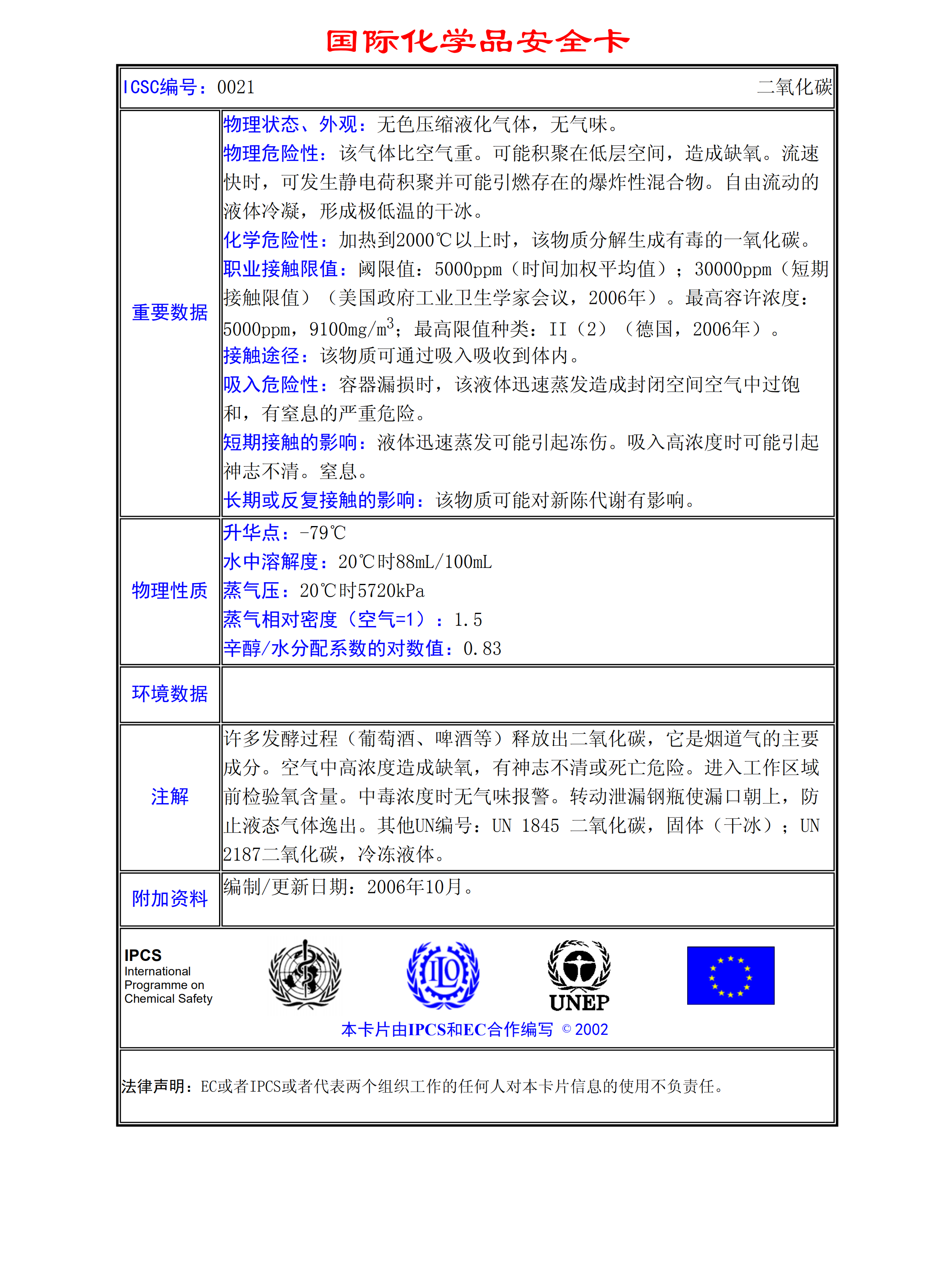 二氧化碳MSDS