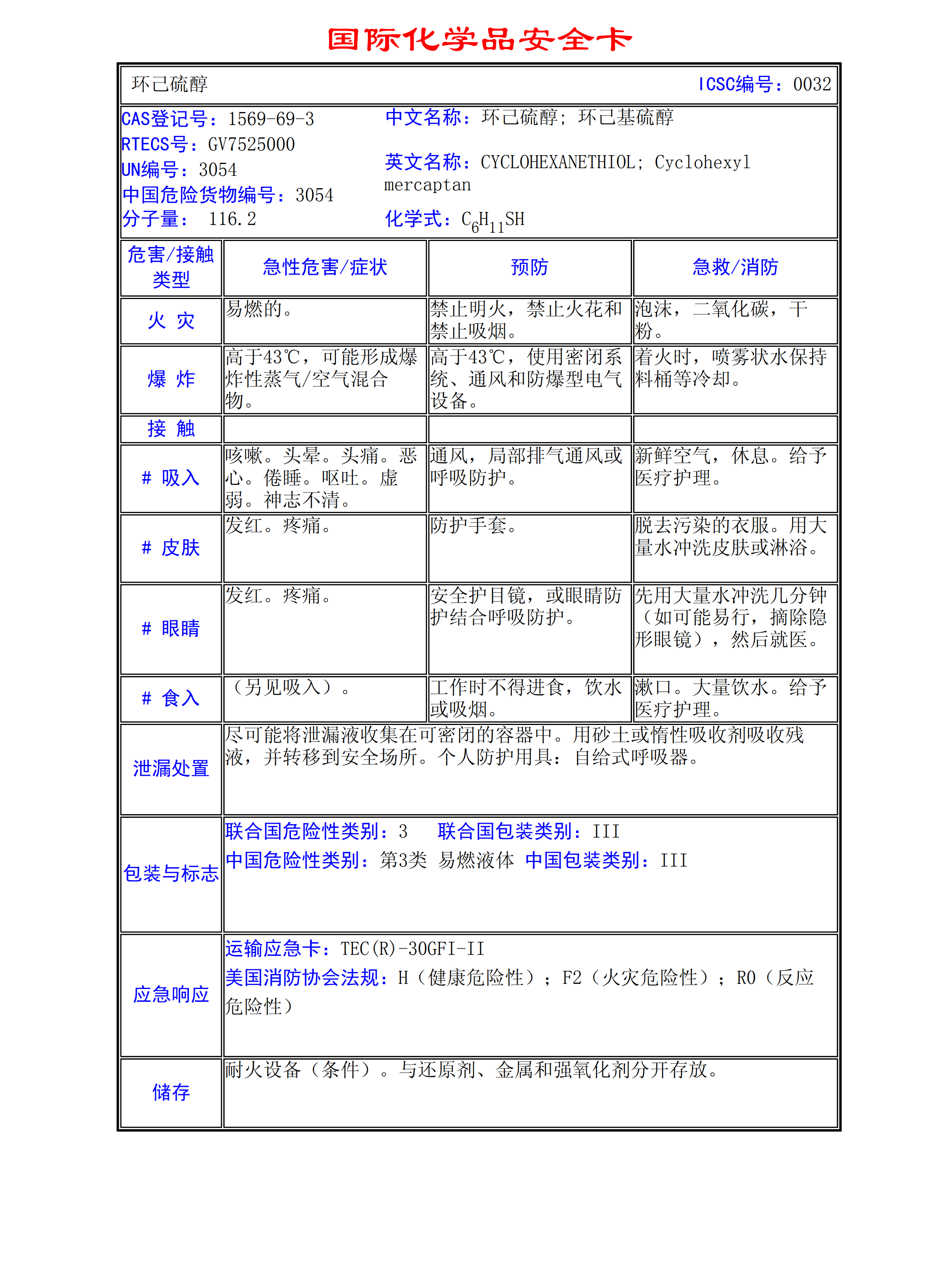 環己硫醇MSDS