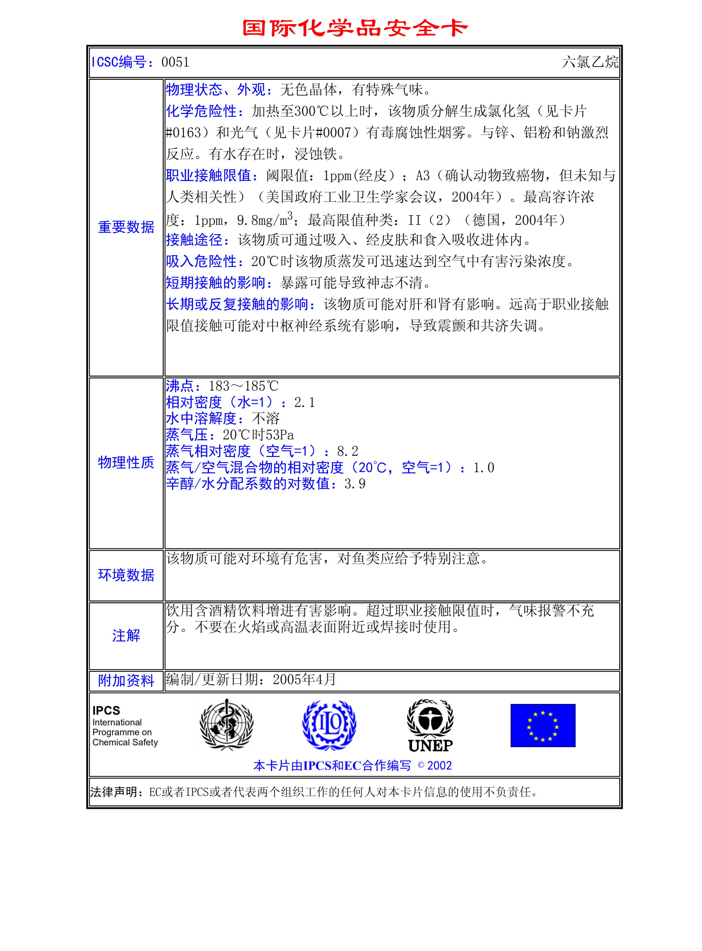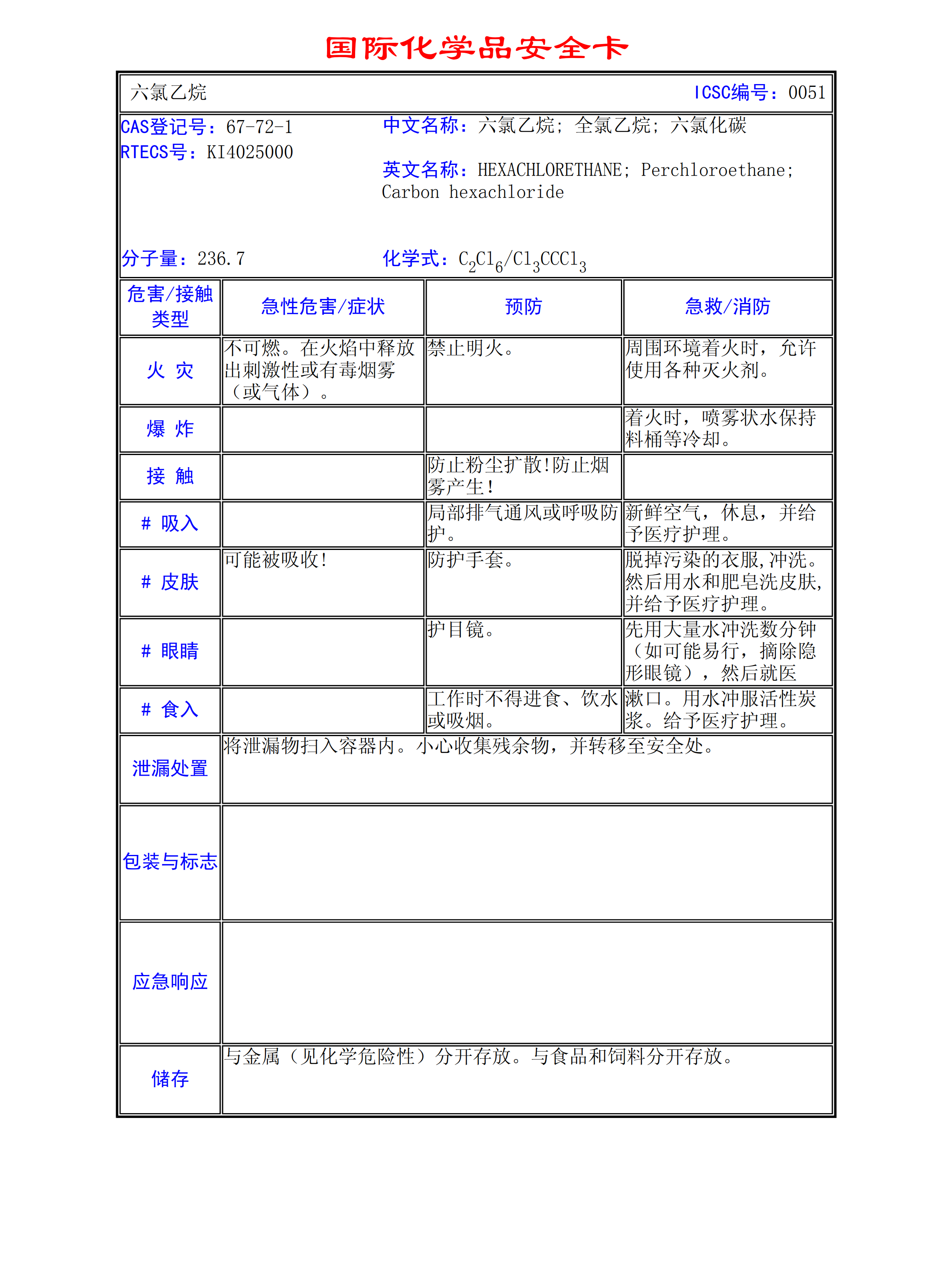 六氯乙烷MSDS