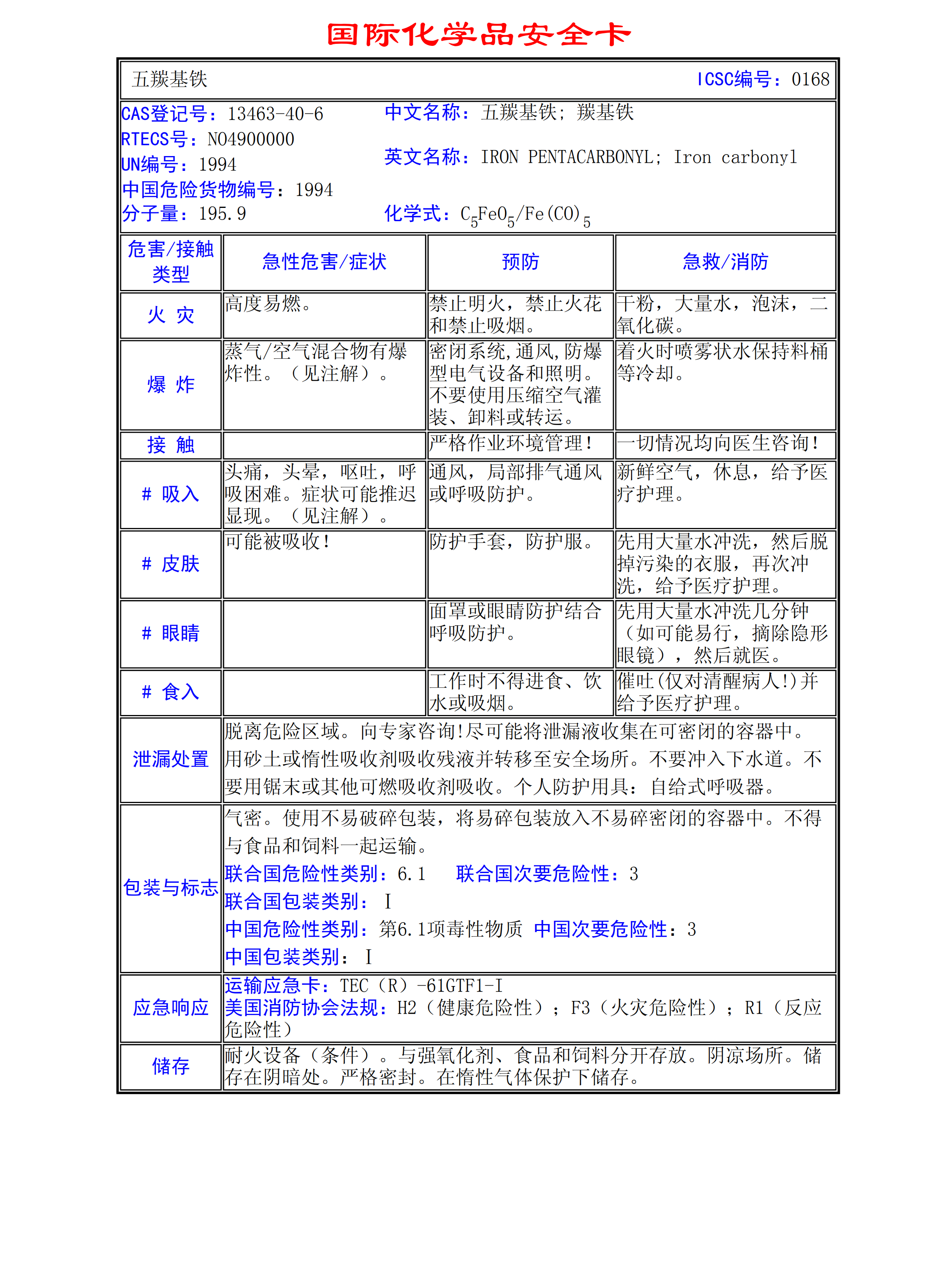 五羰基鐵MSDS
