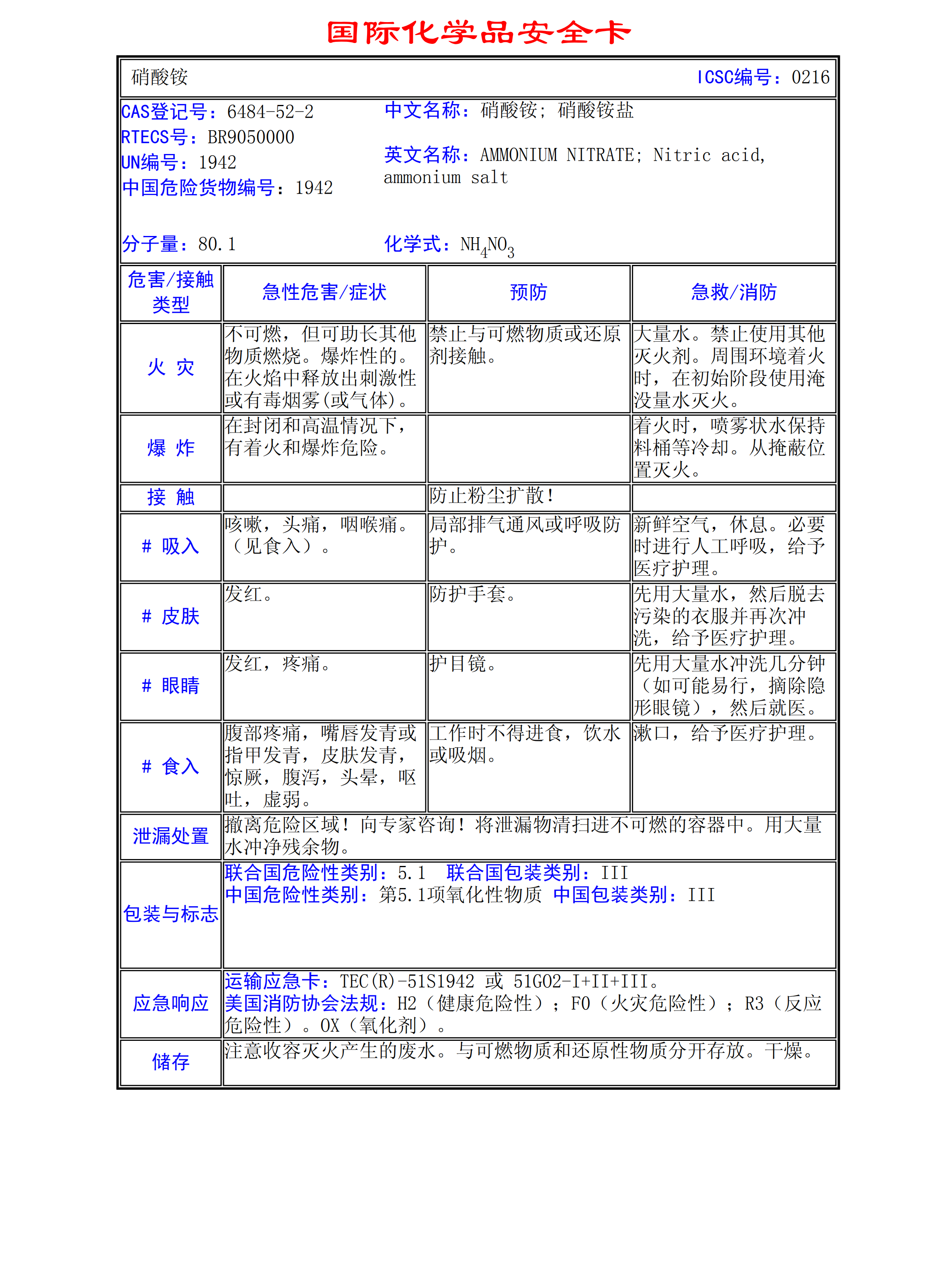 硝酸銨MSDS