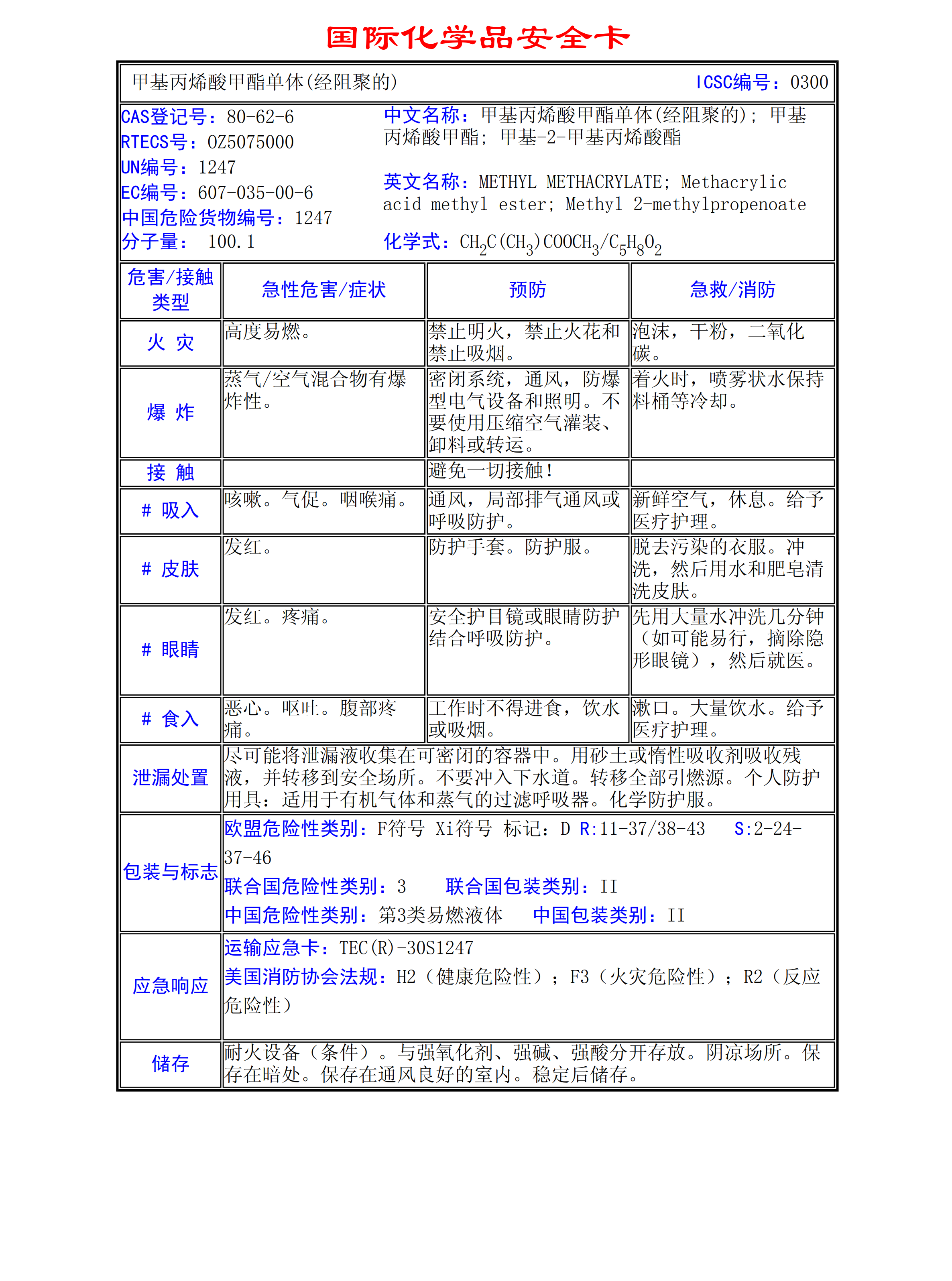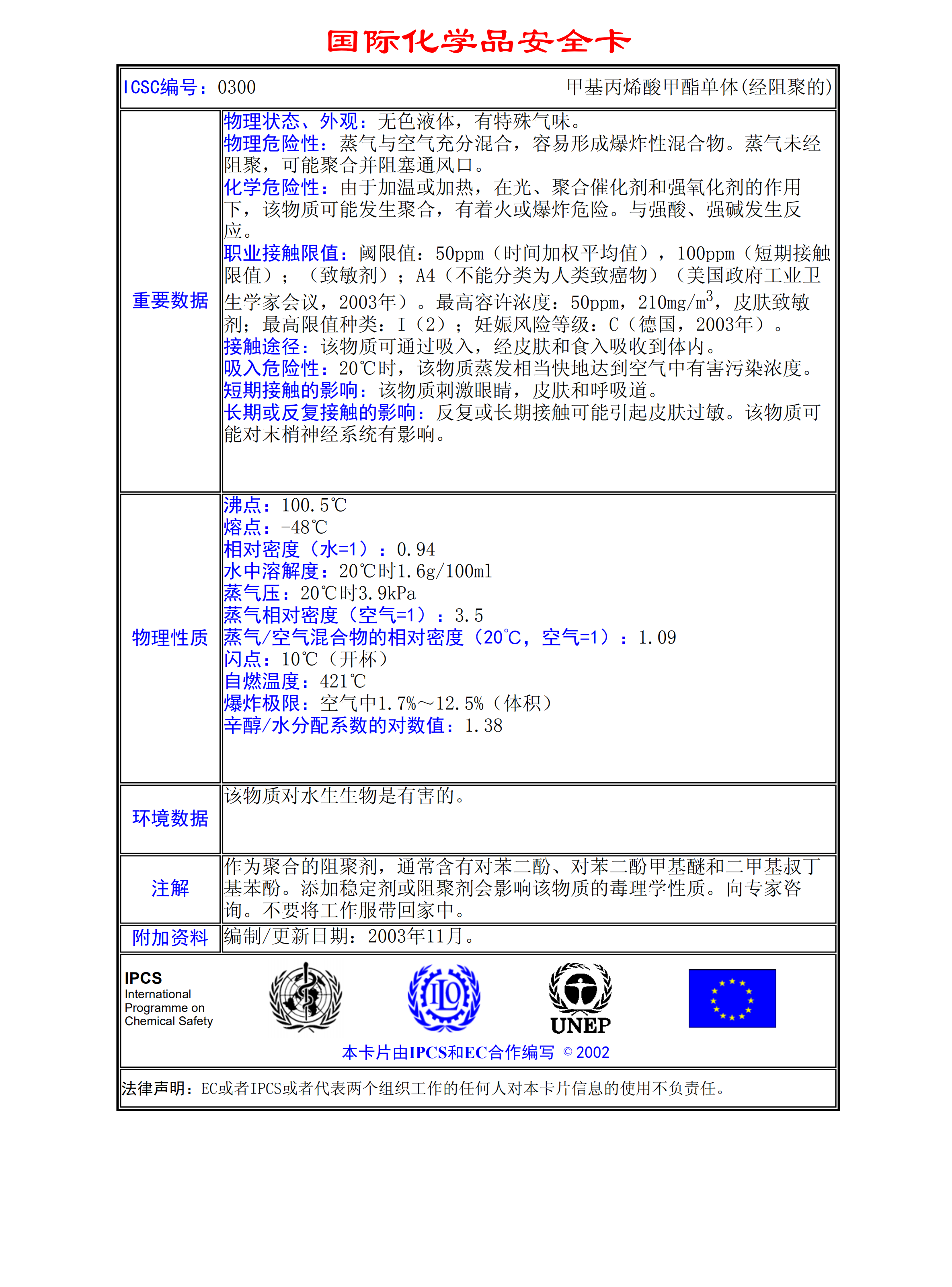 甲基丙烯酸甲酯單體(經阻聚的)MSDS