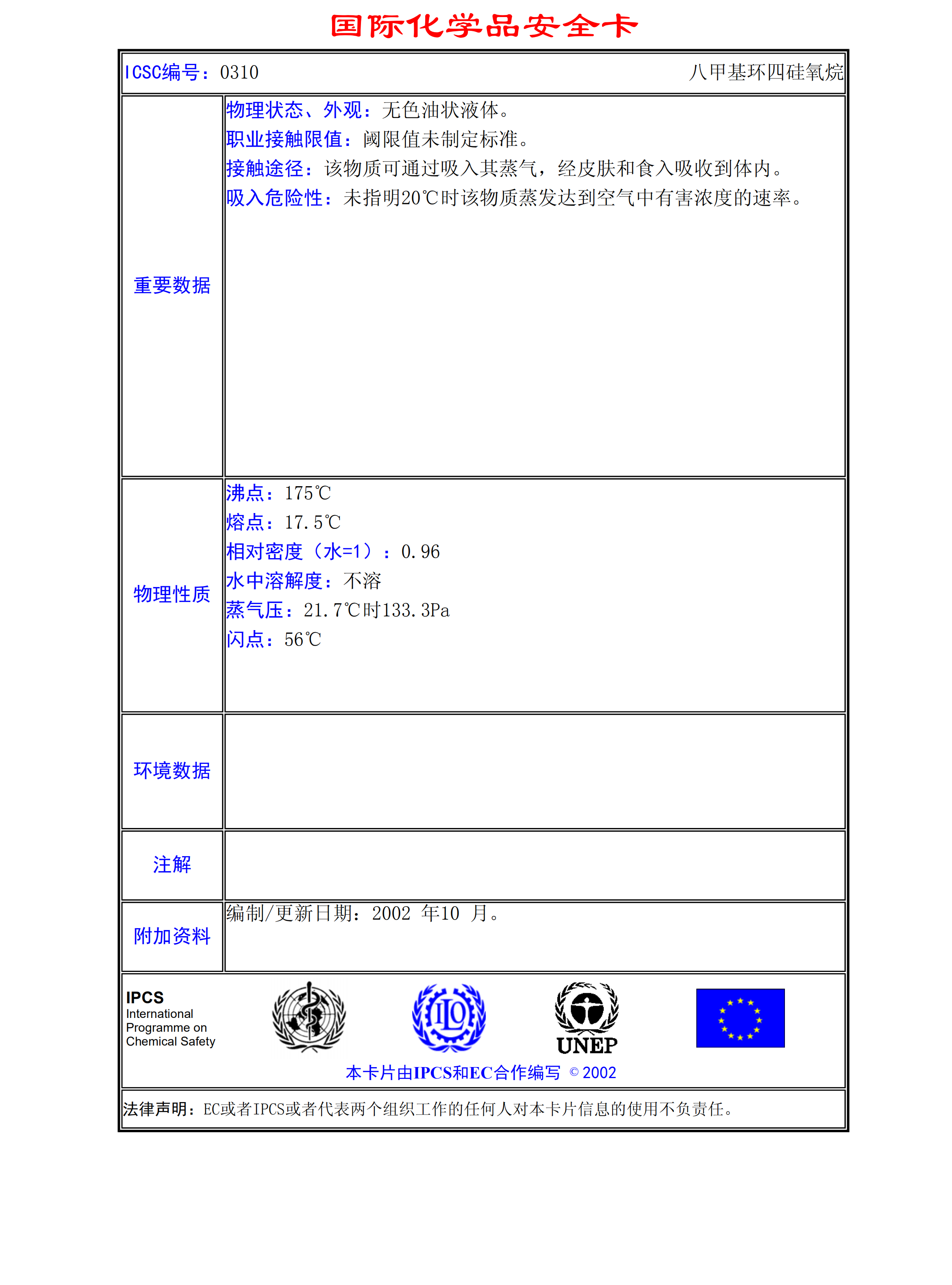 八甲基環四硅氧烷MSDS