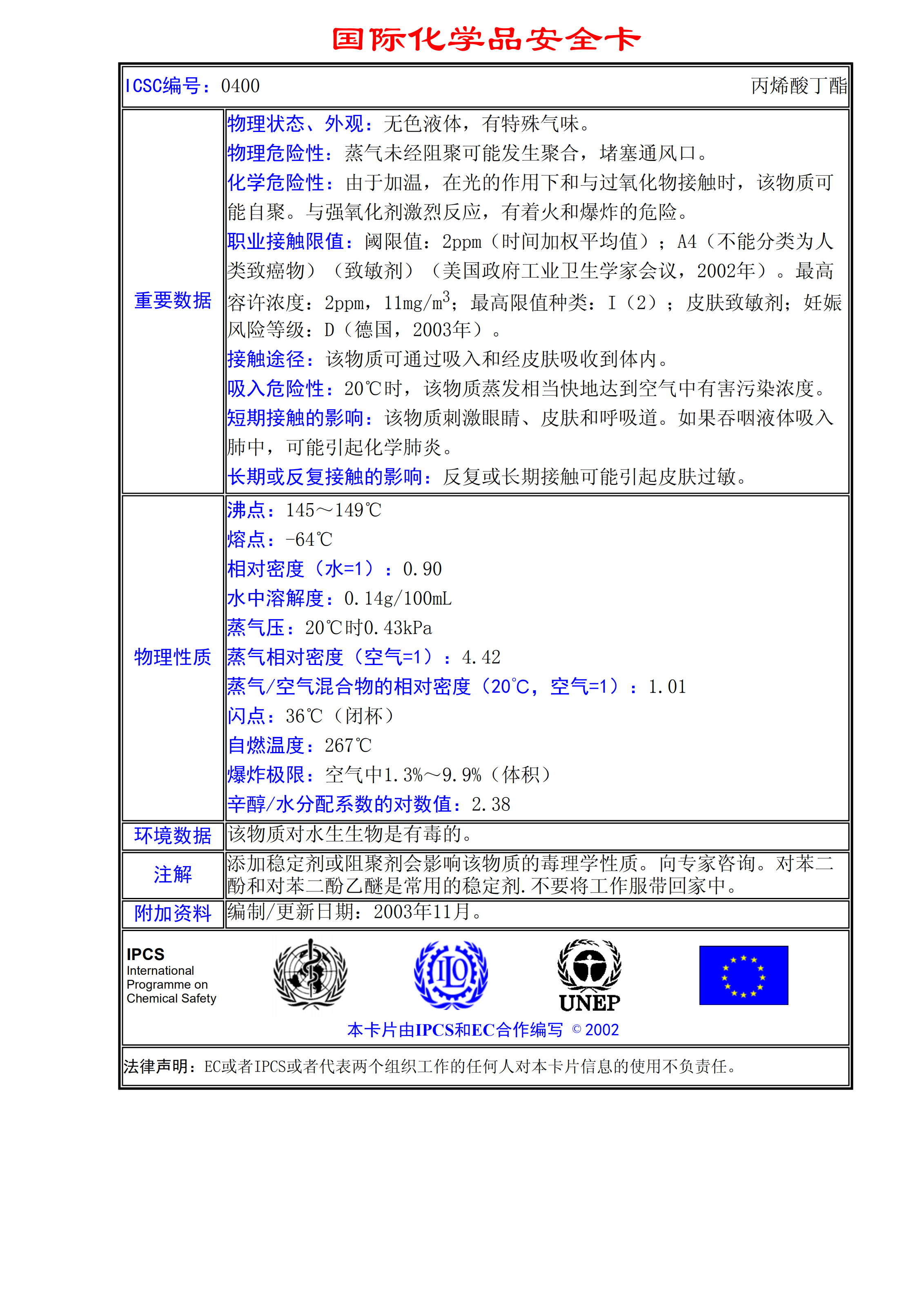 丙烯酸丁酯MSDS