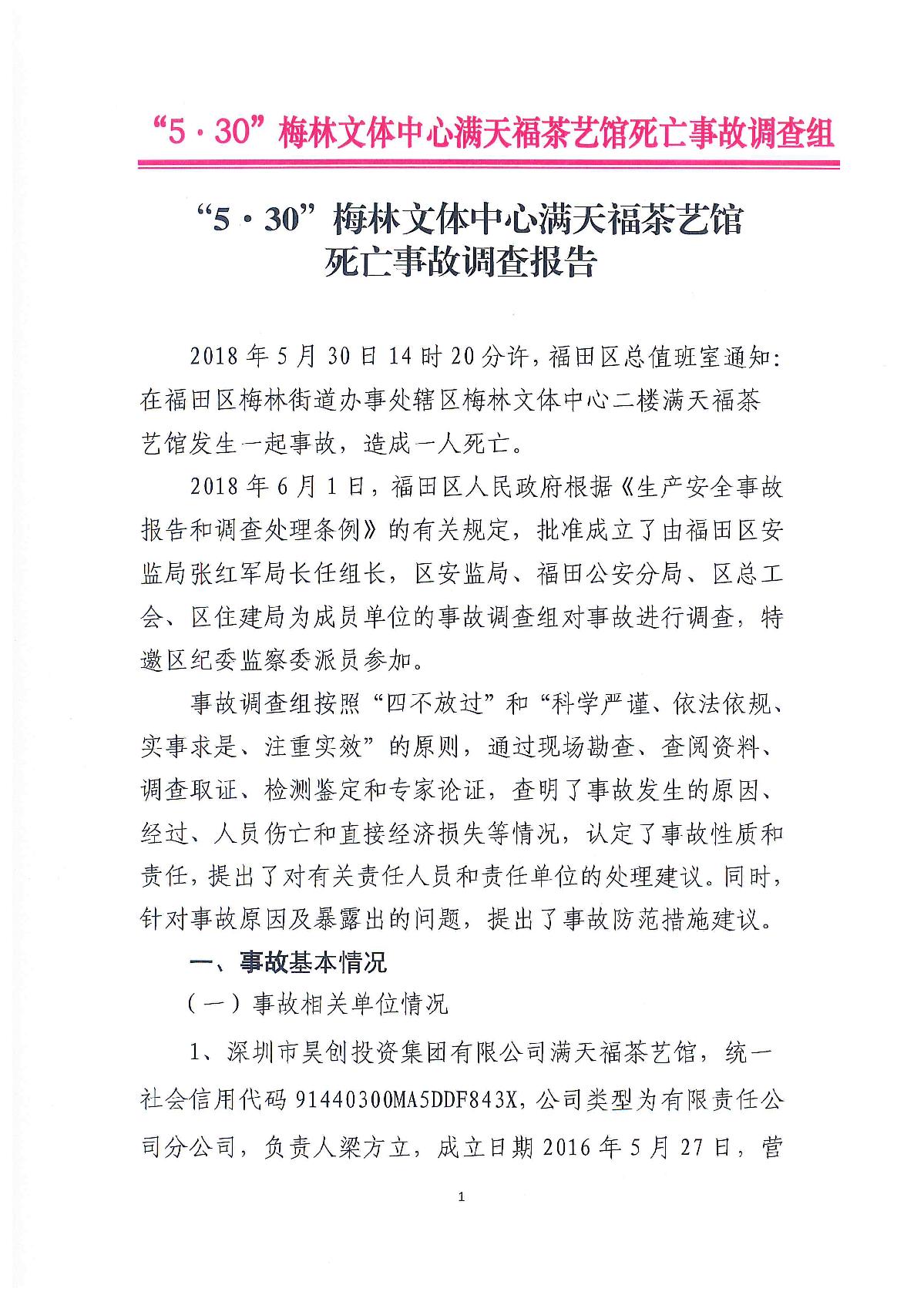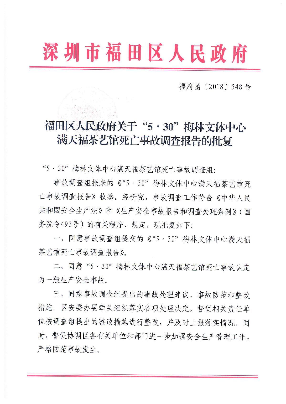 “5.30”梅林文體中心滿天福茶藝館死亡事故調查報告