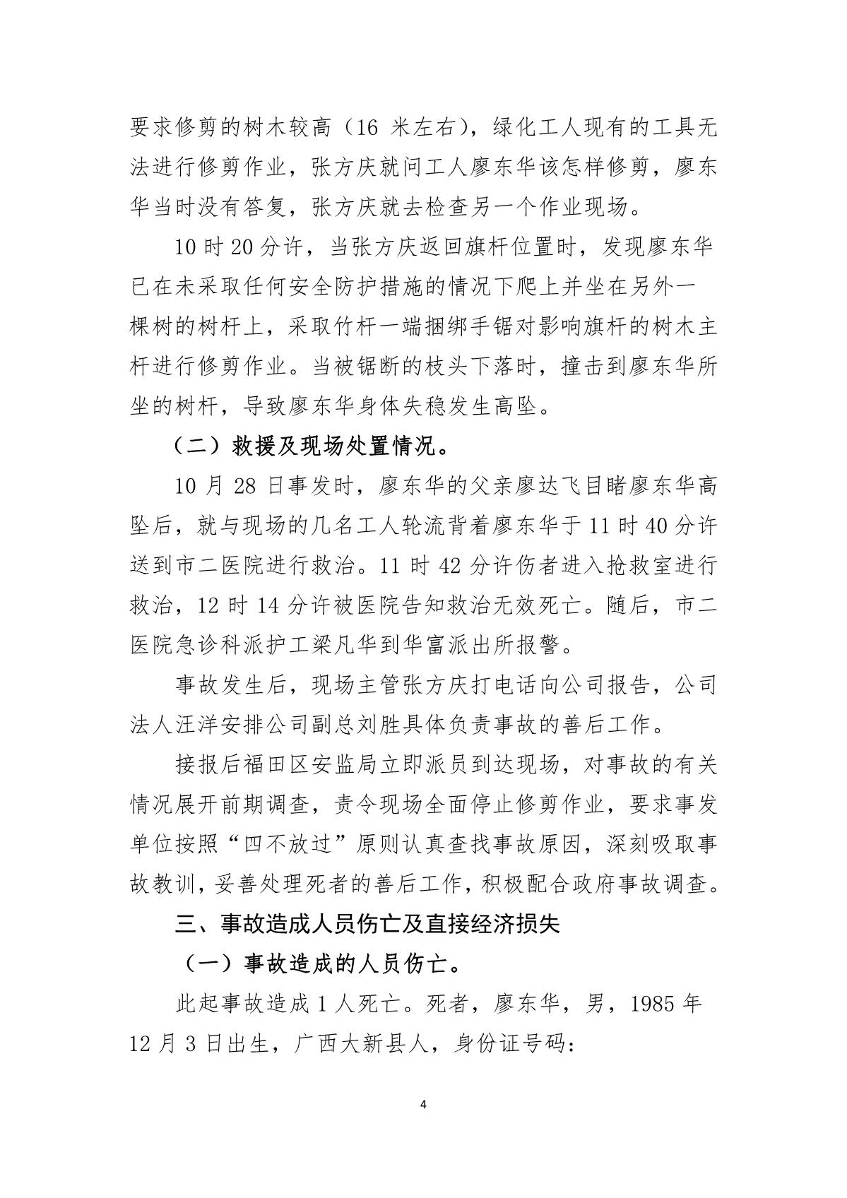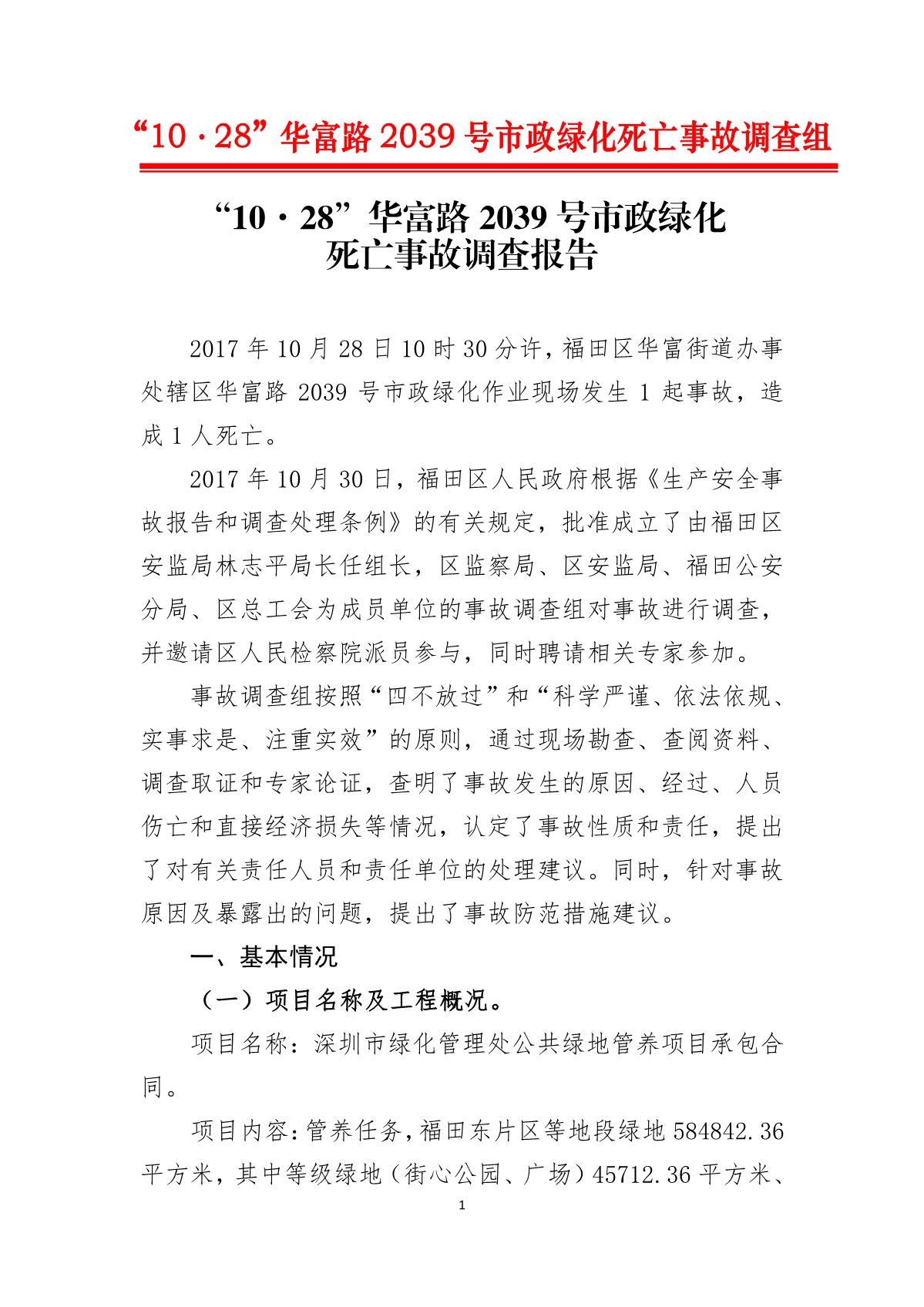 “10.28”華富路2039號市政綠化死亡事故調查報告
