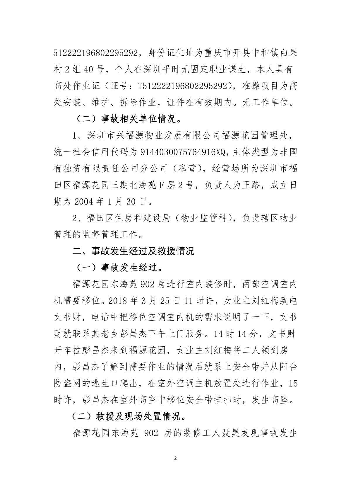 “1.18”福田區禮園工程項目死亡事故調查報告