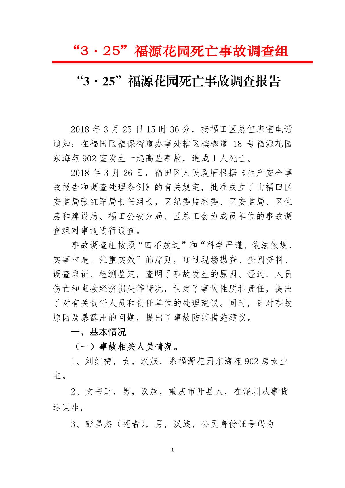 “3.25”福源花園死亡事故調查報告