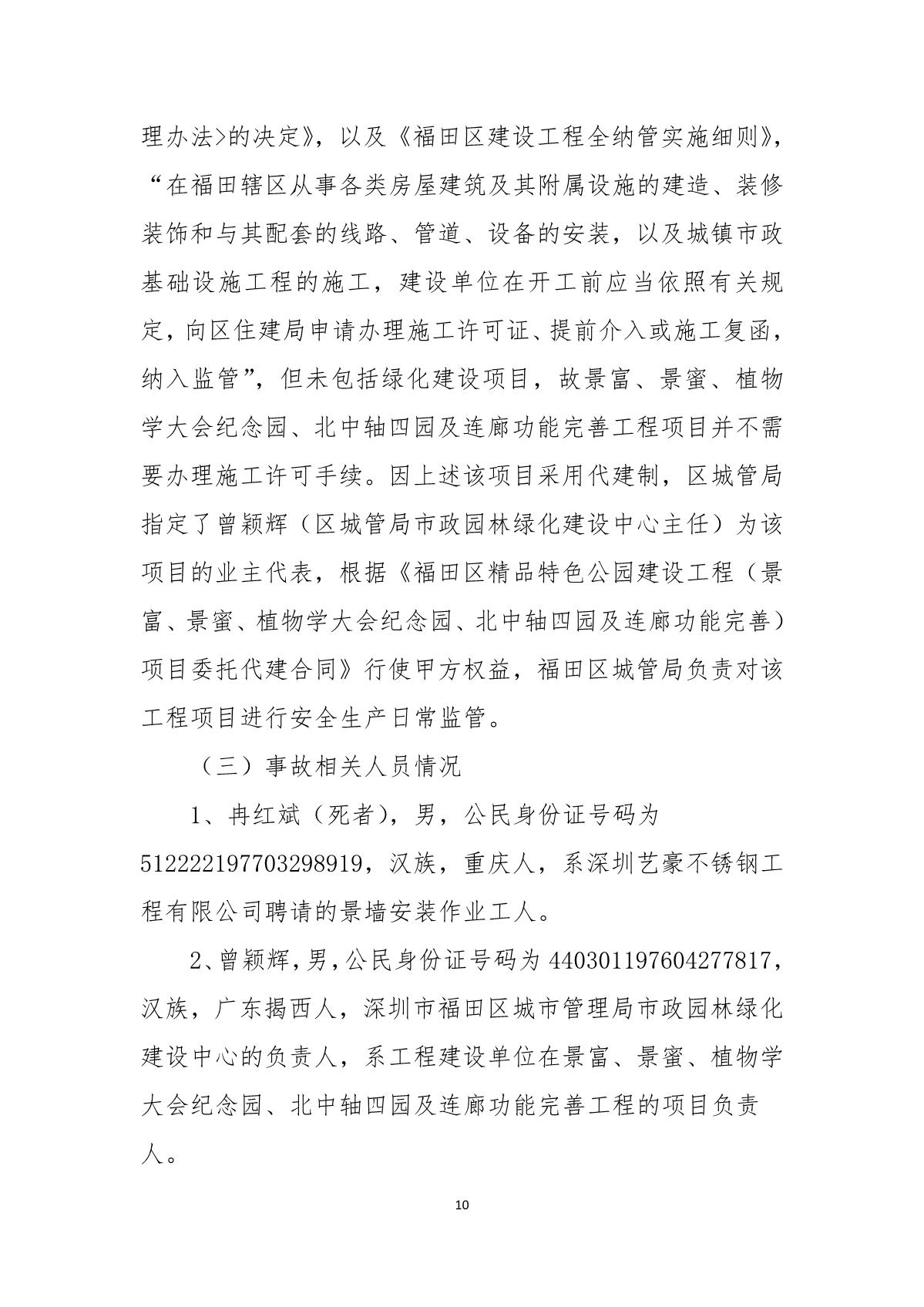 “1.18”福田區禮園工程項目死亡事故調查報告