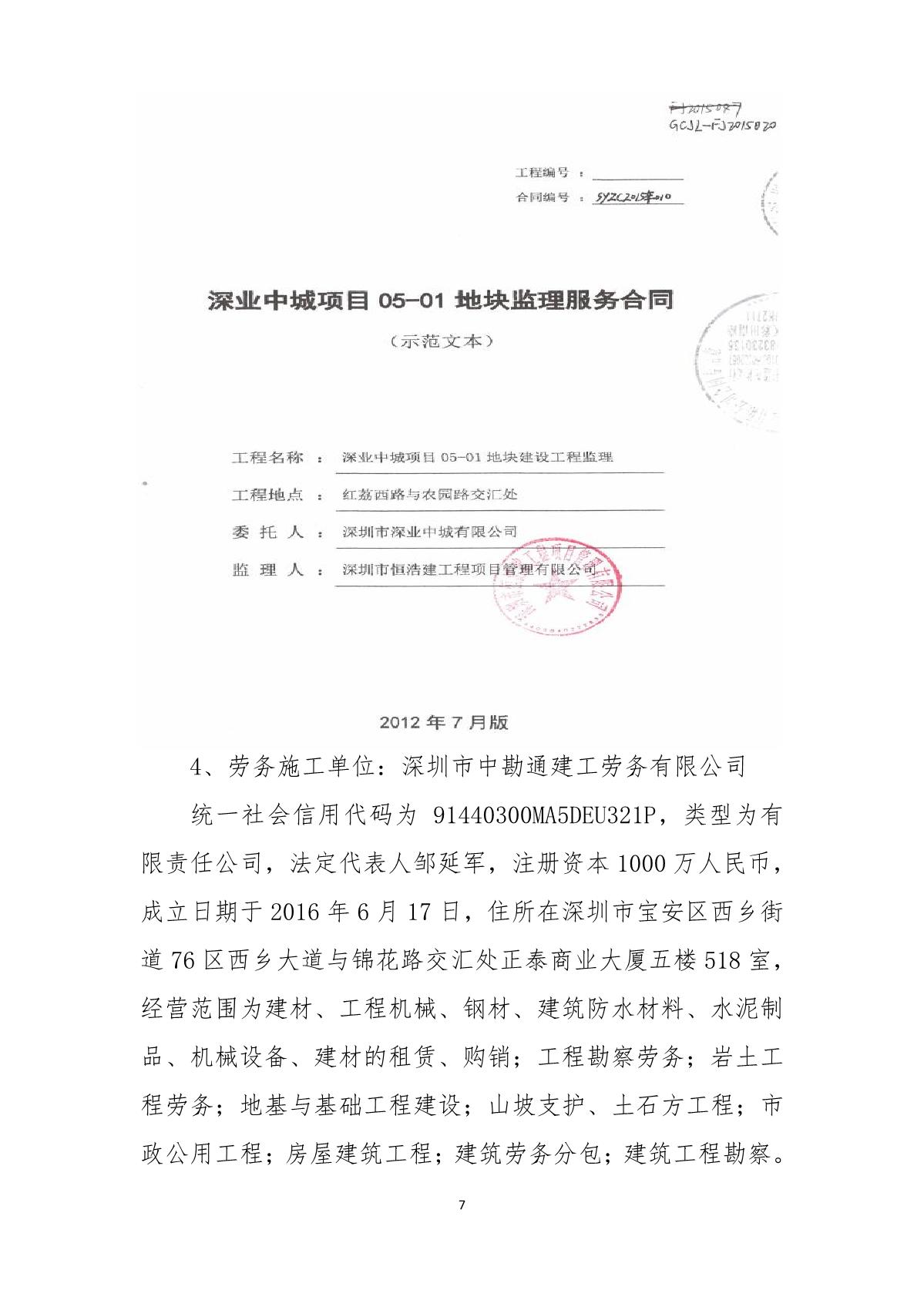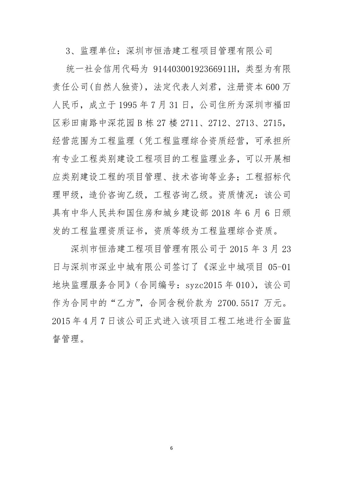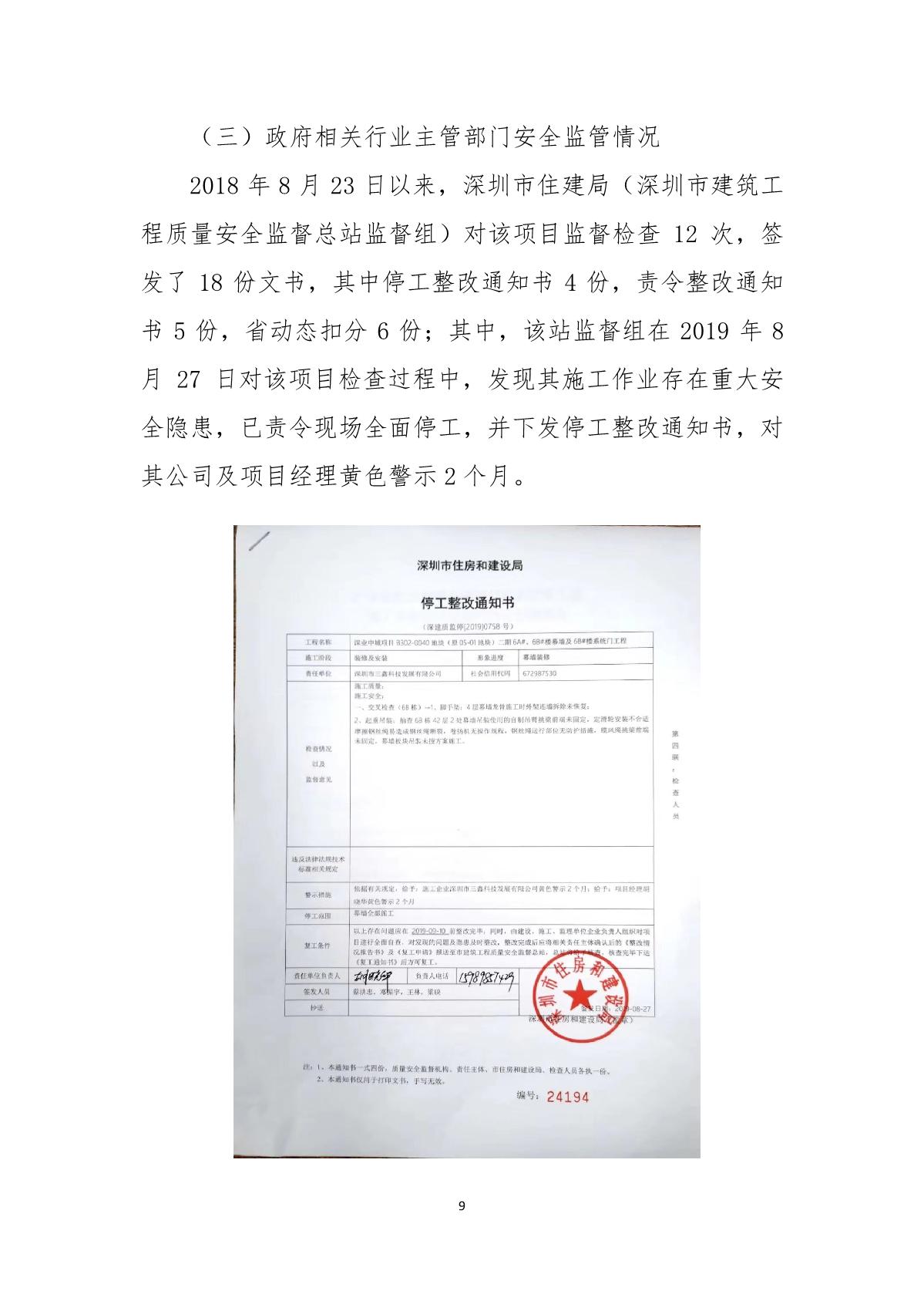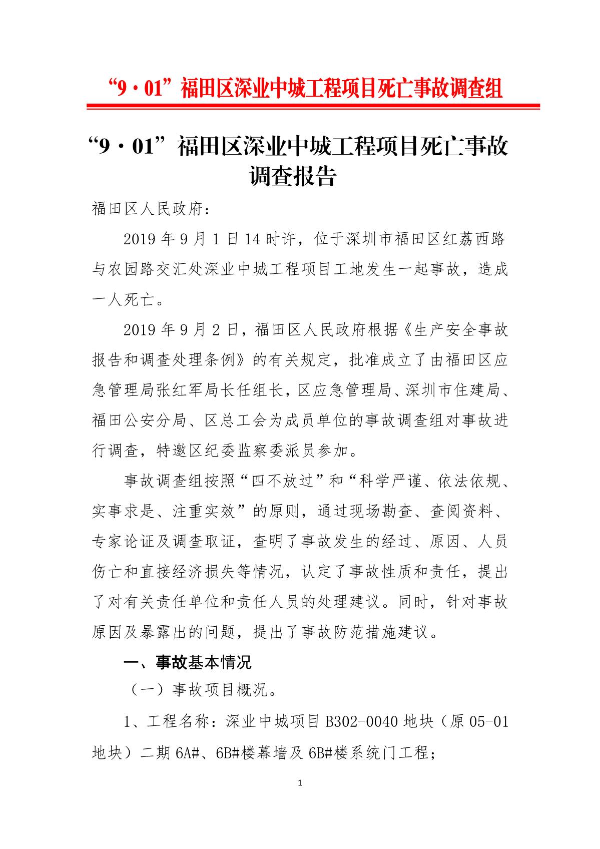 “9.01”福田區深業中城工程項目死亡事故調查報告