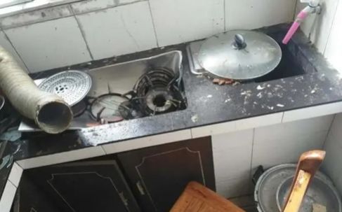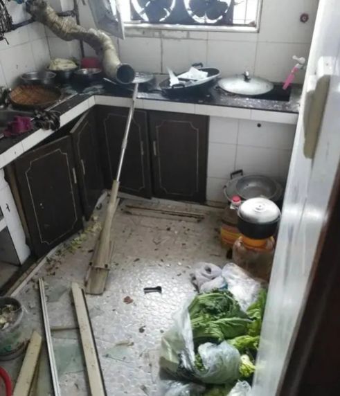 趕緊跑進廚房查看,發現灶上的高壓鍋發生爆炸。廚房里的灶臺、櫥柜、排煙管皆被震碎,現場一片狼藉,