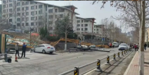 2022年3月6日上午山東濟南一在建工地塔吊施工作業時發生倒塌事故、致停在路邊的轎車多輛被砸、傷亡情況不明、具體事故原因還在調查中,以官方公布為準,安全生產人人有責,嚴重違章超載作業。