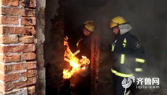 29秒|民房遇火災房頂坍塌 消防員“淡定”拎出噴火煤氣罐