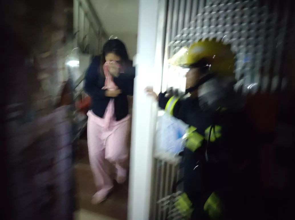 指揮員立即下令出一干線兩水槍開始滅火并慢慢推進,并安撫被困人員,派一組人進入出租屋進行破拆搜救被困人員,搜救組進入出租屋后利用室內消防栓撲滅樓層內的明火,并逐層逐戶疏散出約20名被困人員。