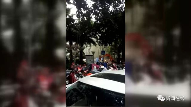 那個煤氣管道(燃氣)沖到樹葉頂了,這么高,然后又聞,那個煤氣好難聞的,然后我就把那個業主全部趕到里頭去,汽車啊,還有那個他們開電動車,我也怕爆炸,我全部趕到 1 棟去。