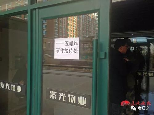 16日上午,居民們陸續到小區物業詢問家中物品和玻璃損壞的賠償問題,小區所屬的錦州紫光物業管理有限公司銀座服務中心,在物業一樓位置特意設置了“一一五爆炸事件接待處”。