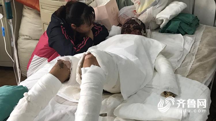 李慧霞介紹說:“9月10號液化氣泄漏,引起他父子燒傷,然后送于高密市人民醫院,結果高密人民醫院說是病情嚴重沒接收,然后轉入濰坊市人民醫院,醫生診斷說孩子的父親是90%燒傷面積以上,孩子是40%以上的燒傷面積?!?/div>